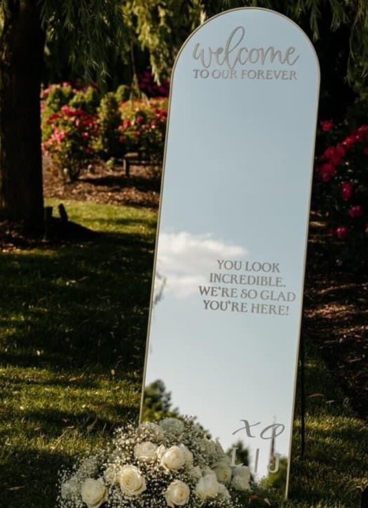 Lustro umożliwia wykonanie zdjęć z dowolnym napisem lub grafiką, w pełni dopasowaną do charakteru wydarzenia — od eleganckich weselnych powitań, po indywidualne hasła czy motywy graficzne. Minimalistyczna forma oraz estetyczne wykończenie sprawiają, że selfie lustro idealnie wpisuje się w każdą aranżację przestrzeni.